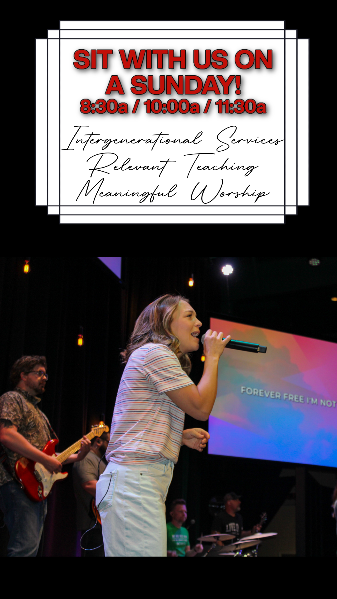 We’d love for you to sit with us on Sunday morning at 9:30 or 11:00!